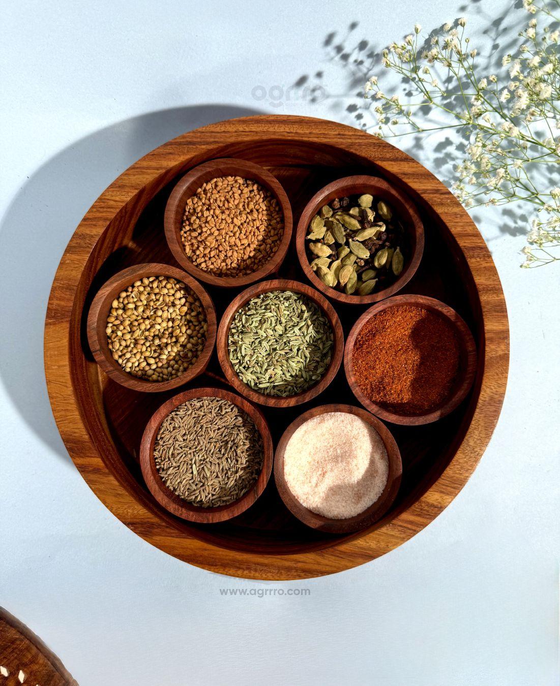 Yes, it's crafted from pure Sheesham wood with a food-safe finish to store spices safely.