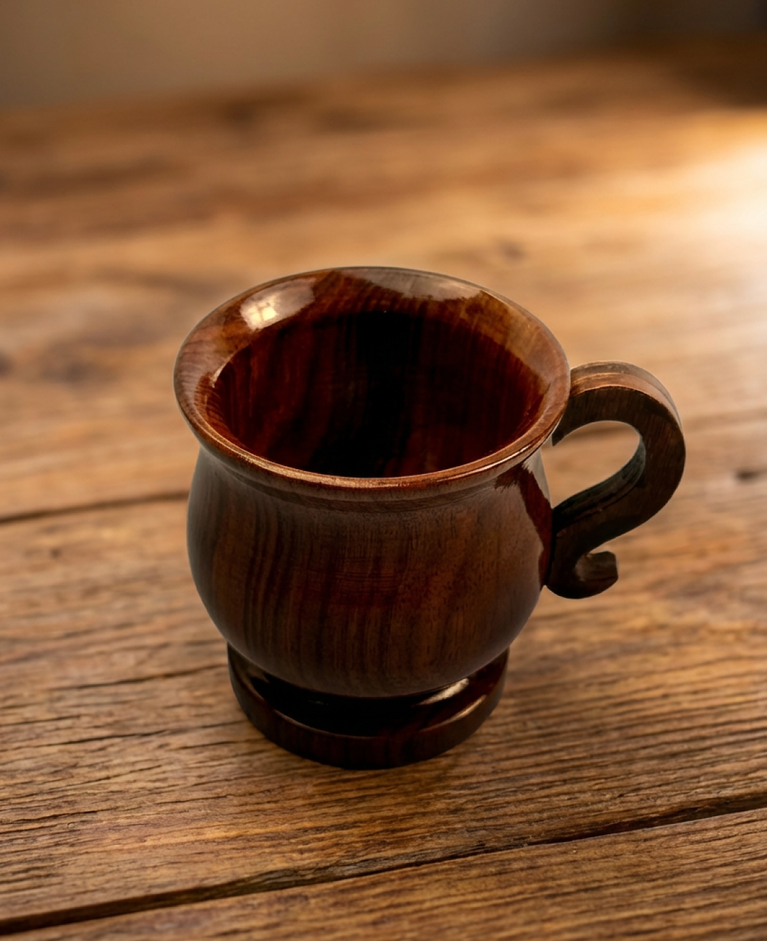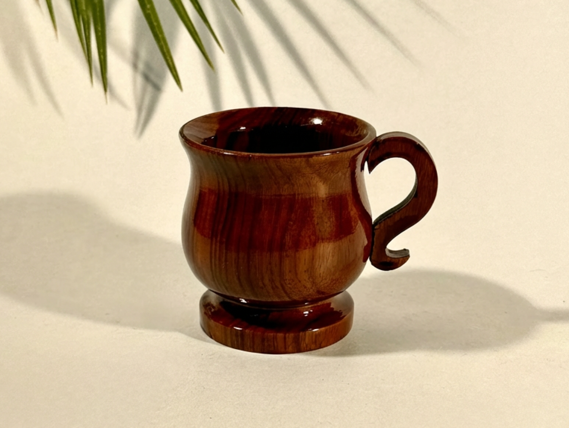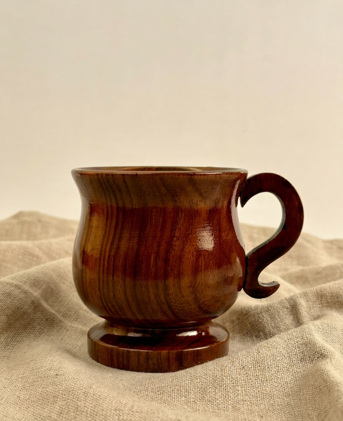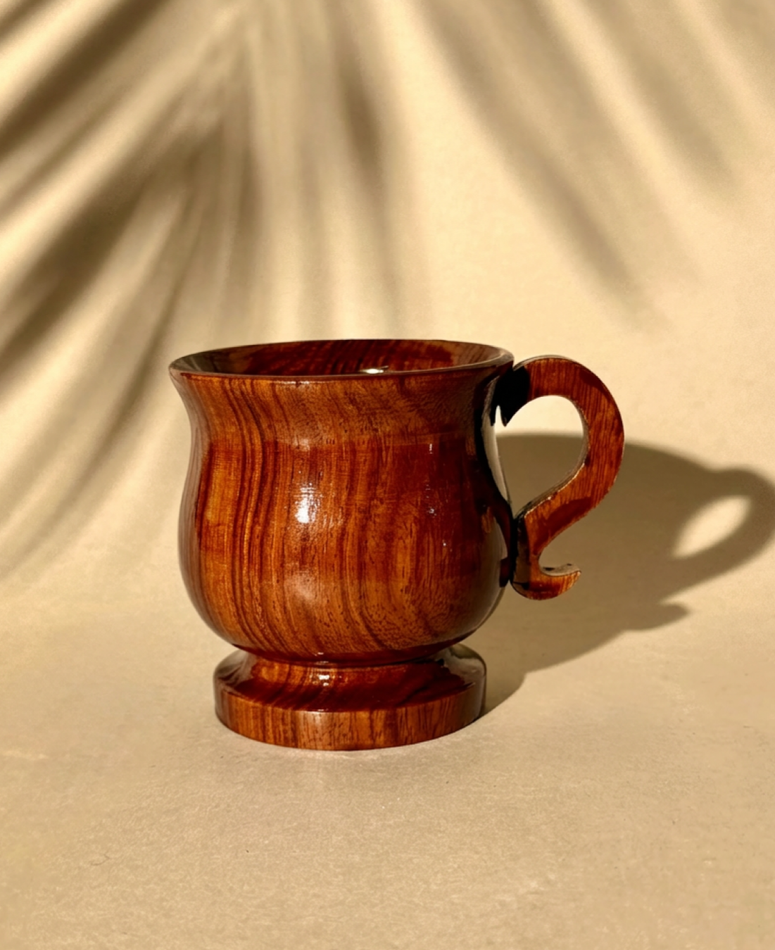 Carefully shaped from solid natural wood and finished with a smooth polish, this mug brings warmth and character to your daily tea or coffee ritual. The rounded body sits comfortably in hand, while the curved wooden handle offers a natural, balanced grip.